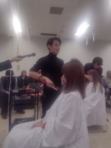 難しい条件のモデルさんを艶々に仕上げたのはもちろんのこと、ツインブラシブローやアイロンスルーの際のコームの使い方、うぶ毛の伸ばし方等細かい職人技を間近で見ることができ、とても勉強になりました!